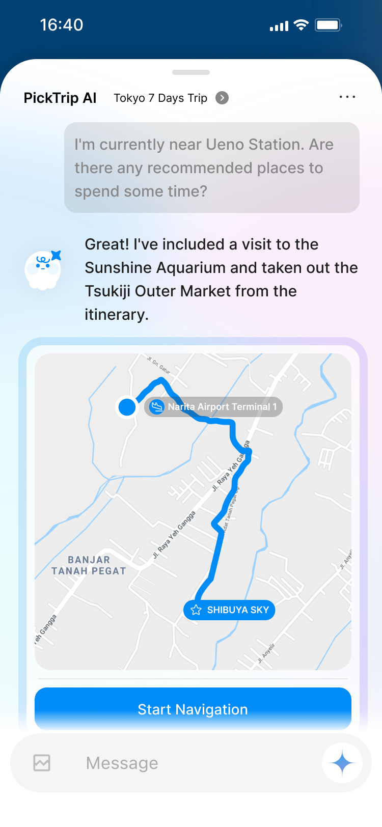 Plan, modify, discuss and record your journeys anytime, anywhere. Picktrip AI assists you from departure to return — turning trip planning into a conversation with friends.